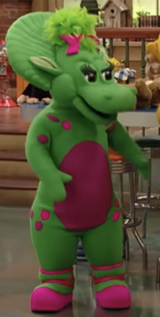 Barney's Fun & Games-Season 4 | 1996-1998 | This costume is not much different from the previous version, except for her eyelashes, which are now smaller and much more flared and raised slightly higher than the previous suit. This suit was also used on live appearances and Barney Books until 1998. |