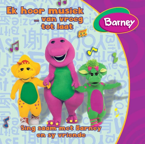 Ek hoor musiek... van vroeg tot laat is a Barney album that was released in South Africa in 2010. It features songs from the Afrikaans dub of Barney & Friends, mainly from season ten.