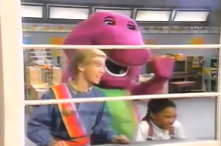 Upon seeing Michael, BJ inquires as to how he got to be a crossing guard; Michael explains that crossing guards need to know all the safety rules about crossing the street. Tosha adds to the discussion, advising against running into the street after a pet or a toy. After the group imagines what vehicles they'd like to drive on the street, Barney pretends to be a bus driver, and the kids join in.